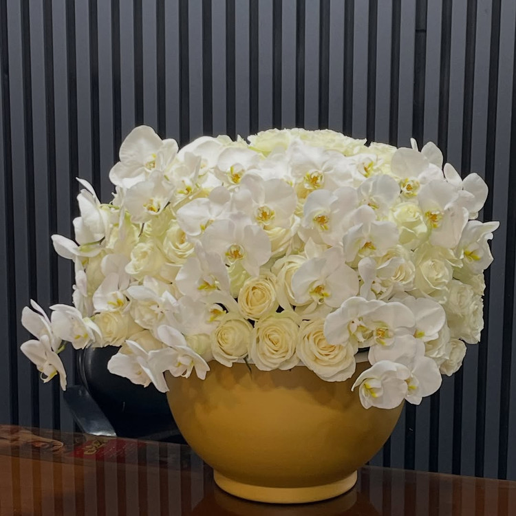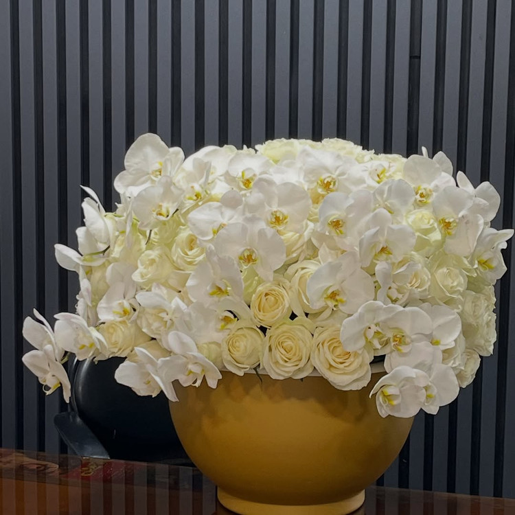 ترکیبی از ظرافت و لوکس بودن جامی از رزهای هلندی خوشرنگ در کنار ارکیدههای خاص و دلربا، نمادی از عشق، زیبایی و ماندگاری یک انتخاب شیک برای سورپرایزهای خاص، جشنها و لحظههای فراموشنشدنی