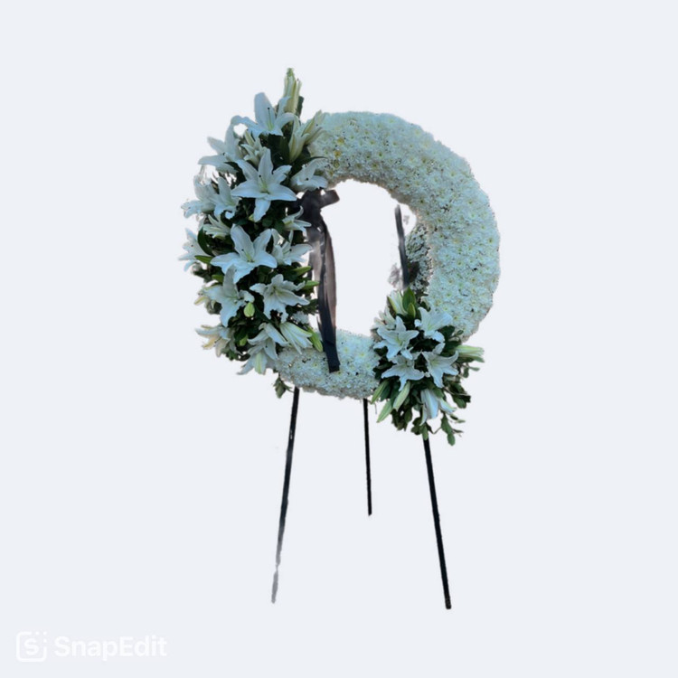 تاج گل درباری برای مناسبت ترحیم کارشده با تازه ترین گلهای روز بازار گل هست