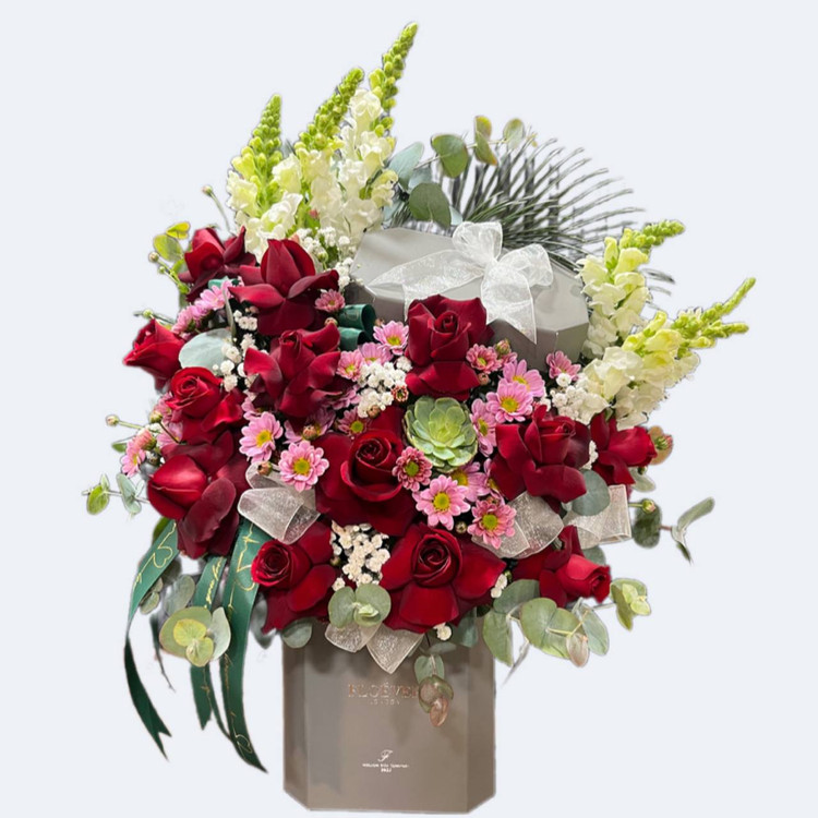 دستهبندی: باکس گل هشت ضلعی تبریک